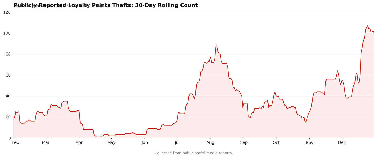 Because its systems cannot see them. The architecture that processes award redemptions has no fraud detection capability.