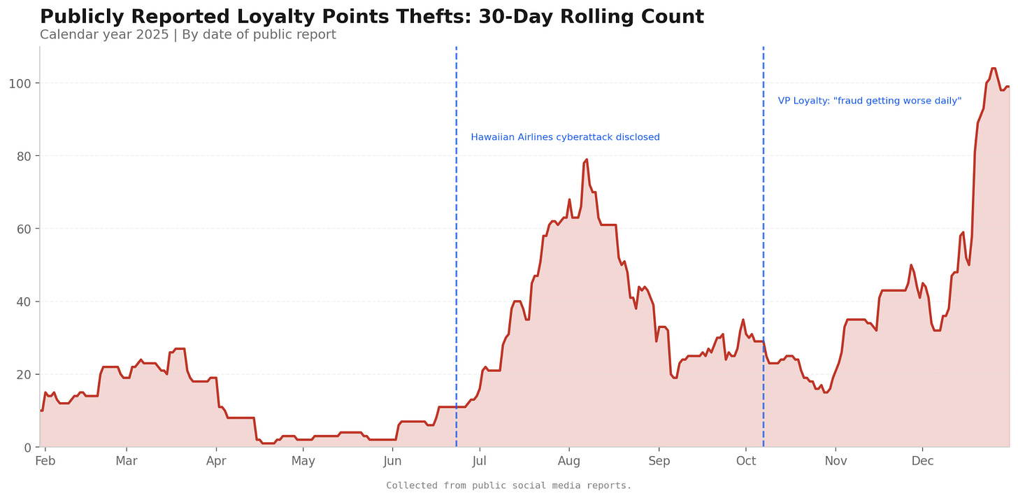 The acceleration of these attacks correlates directly with the 23 June 2025 Hawaiian Airlines breach. Credential stuffing compromises would show a more consistent flow of thefts.